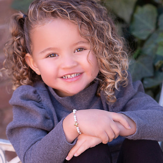 Lacey - Sterling Silver Pearl Cross Bracelet
