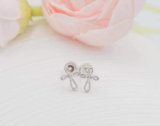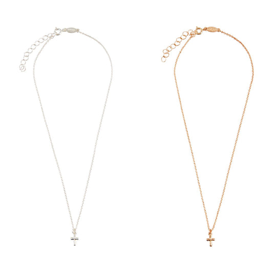 Kids 18K White Gold Plated Mini Beads with Silver Cross Necklace