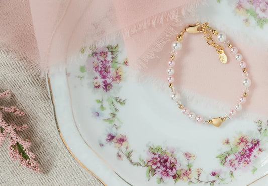 Evelyn - Gold Plated Pearl & Heart Bracelet