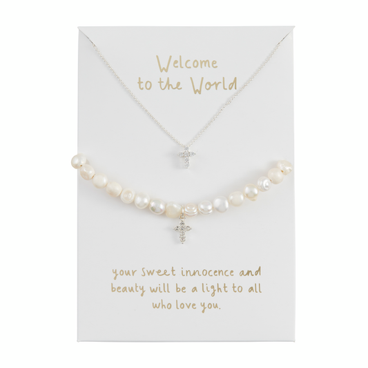 Olivia - Sterling Silver Pearl & Cross Bracelet