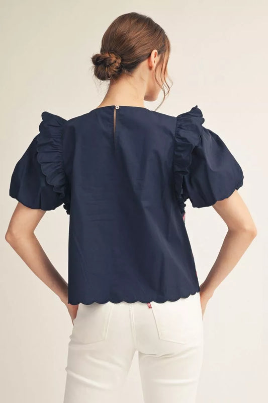 Evening Bloom Ruffle Dress - Charcoal Navy