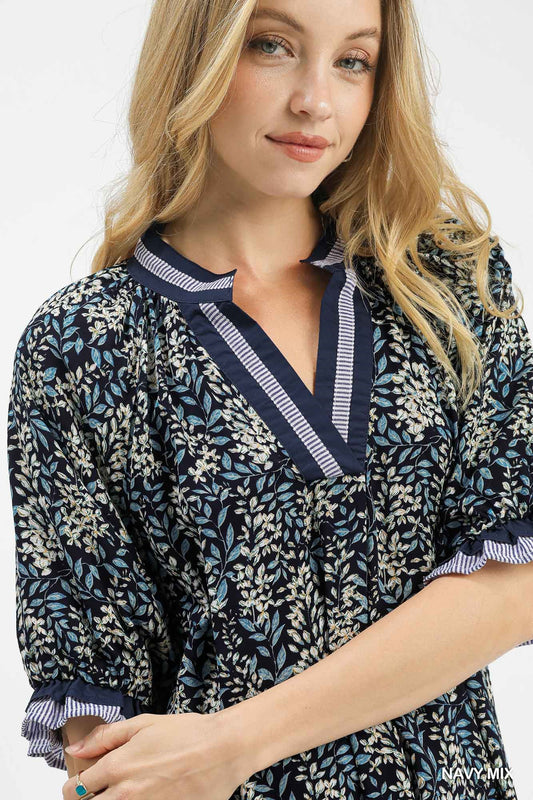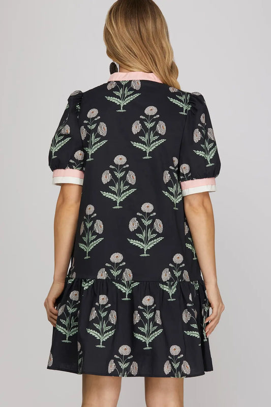 Hydrangea Ribbons Tie Top Ruffle Dress