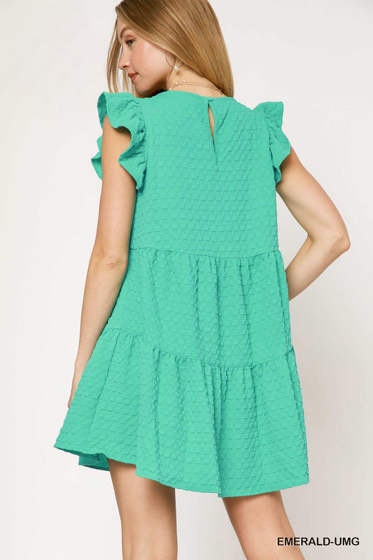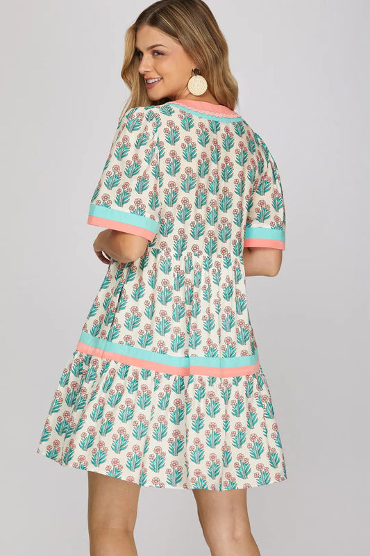Coastal Bloom Ruffle Dress - Aqua Blue