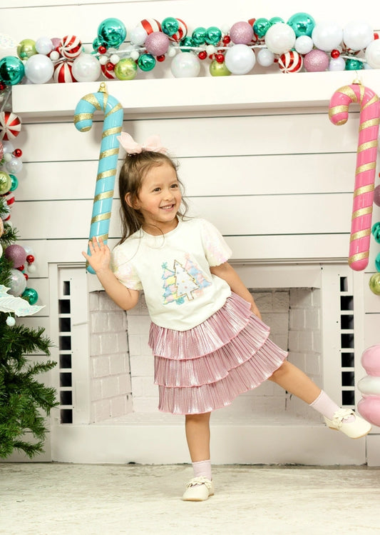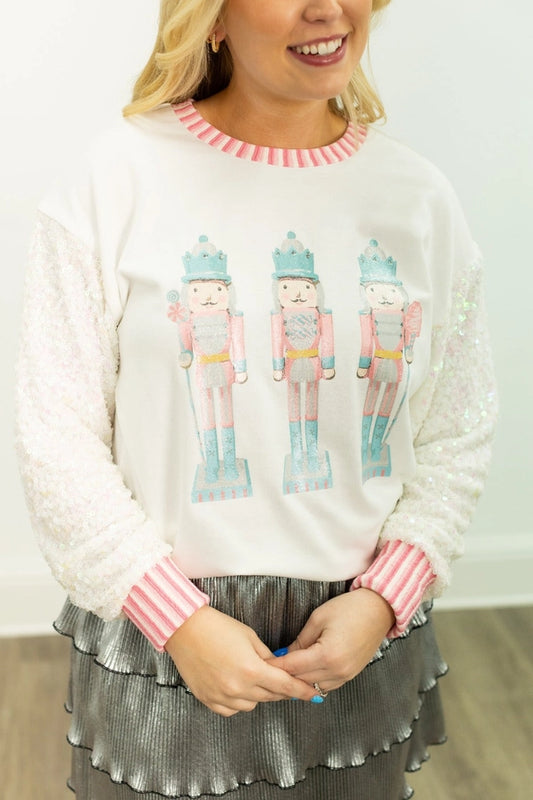 White Glitter Nutcrackers Top with Sequin Sleeves