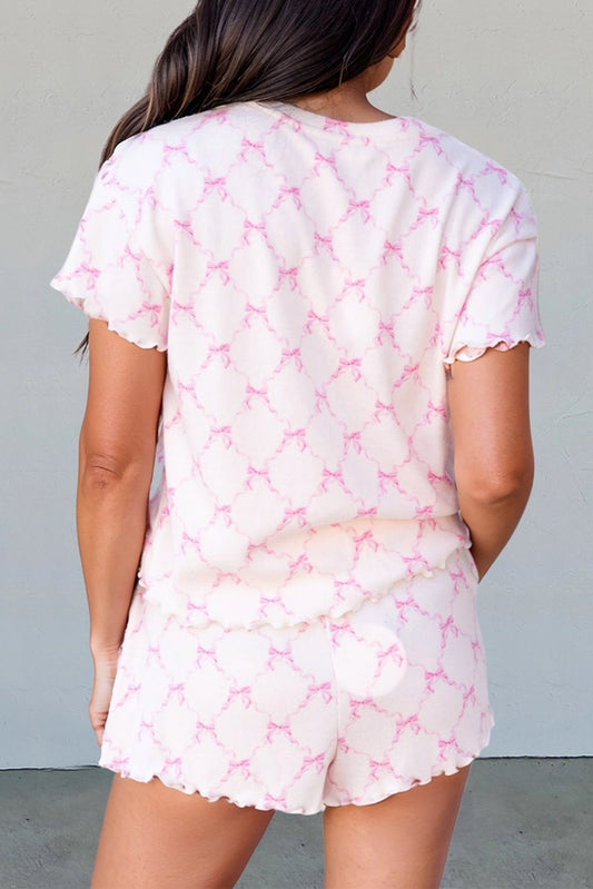 Bow Knot Lettuce Trim Lounge Shorts Set