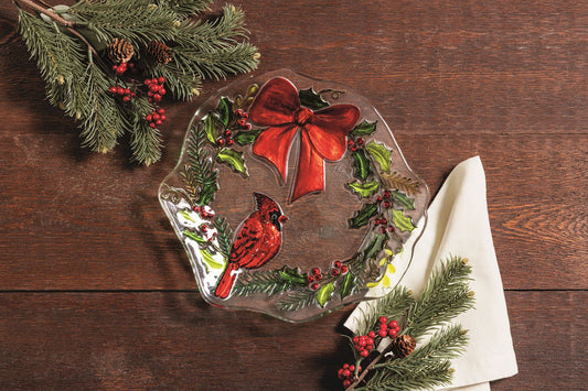 Mud Pie Fused Glass Cardinal Wreath Plate