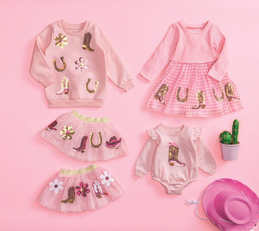 Mud Pie Pink Sequin Boot Sweatshirt Bubble