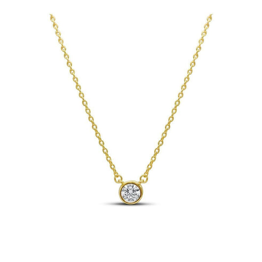 Gold Round Solitaire Halo Necklace - Modern Glamour