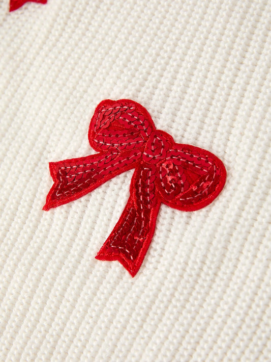 Youth Cream Sweater with Red Sequin Bows