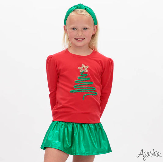 Youth Red Christmas Tree Tinsel Holly Top