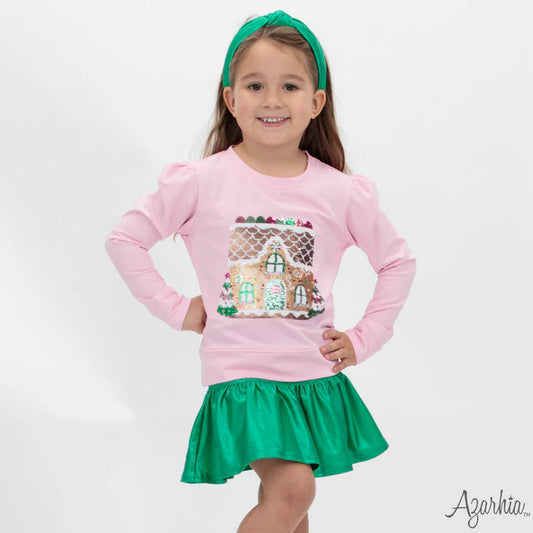 Youth Pink Gingerbread House Sequin Holly Top