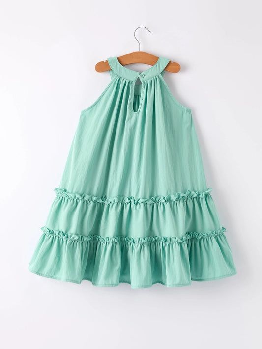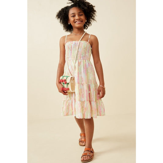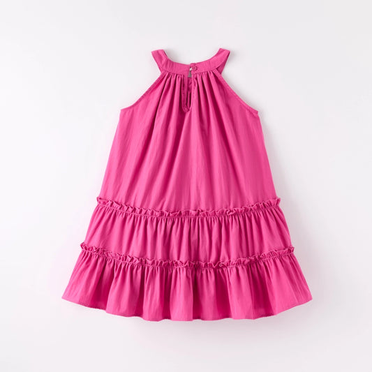 Tween Pink Tiered Eyelet Dress with Flutter Sleeves