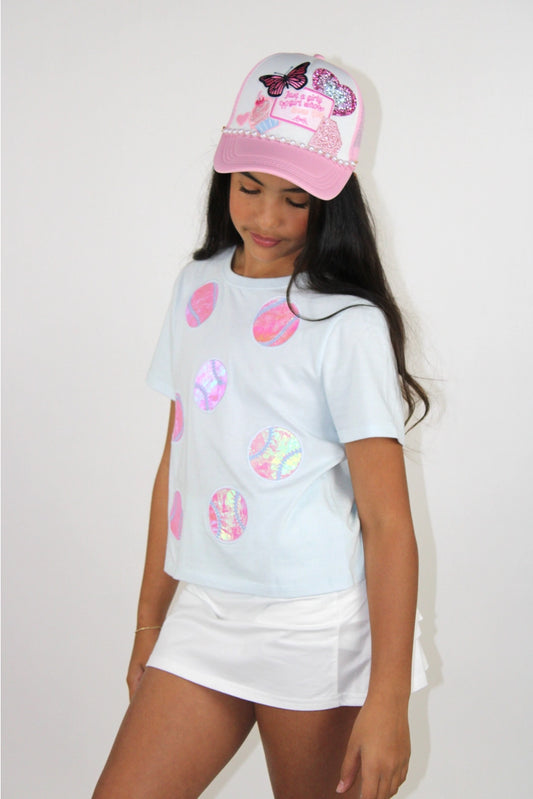 Youth Red Tinsel Game Day Ringer Boxy Tee