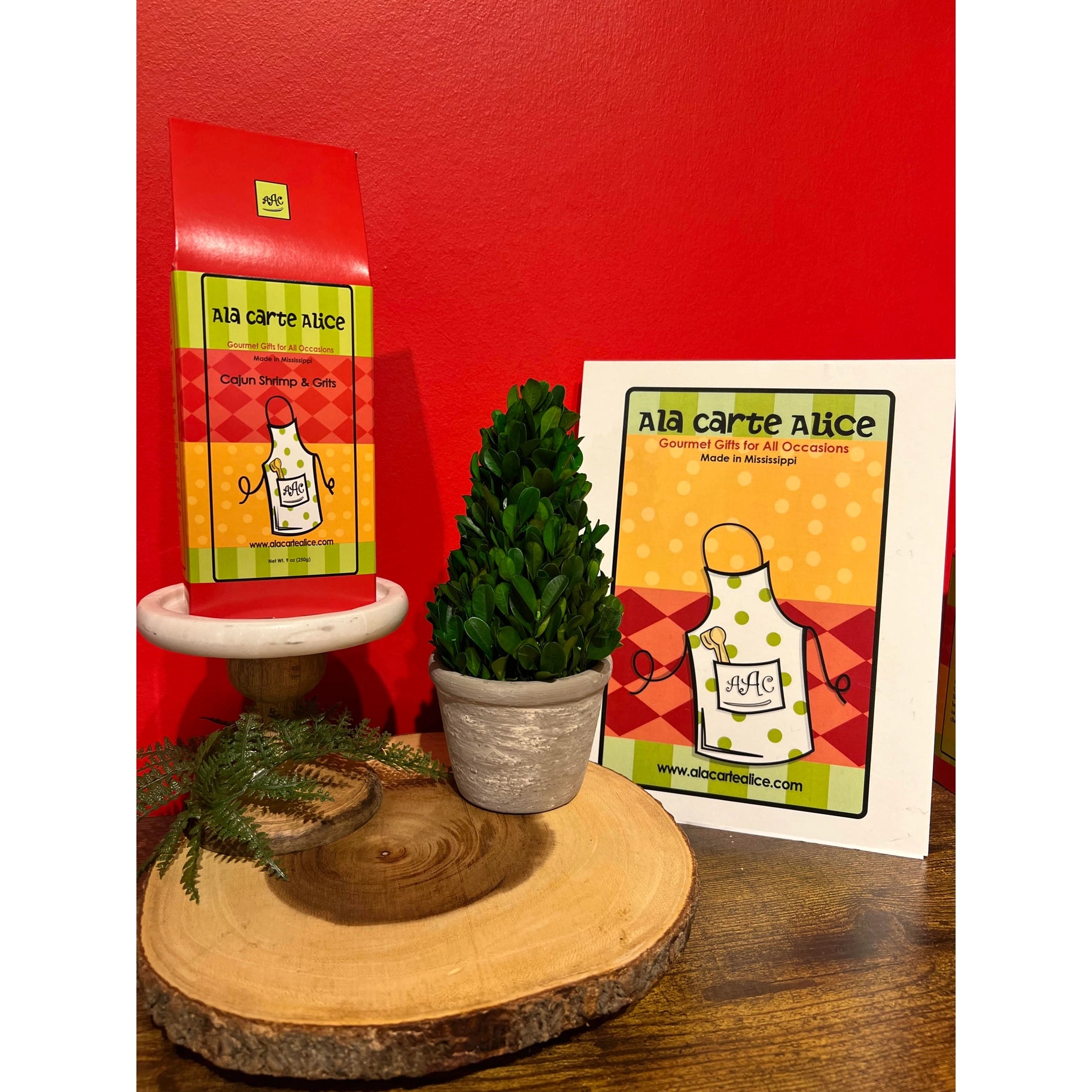 Stone ground grits topped with a spicy cajun butter that will make you want a second helping. You cook the grits, melt butter add our season packet saute shrimp and your ready to eat. Serves 8-10. This is one of our top sellers.
