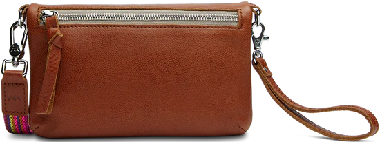 - Included detachable wristlet strap and adjustable woven crossbody strap