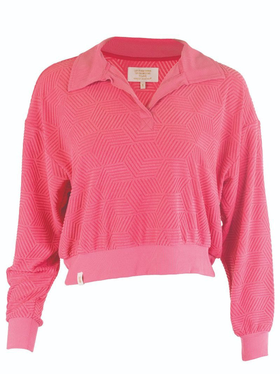 Experience luxurious comfort and style with our Hot Pink Terry Textured Pullover! Featuring a wide V-neck collar, textured design, and ribbed cuffs, this 100% polyester pullover is the perfect blend of fashion and functionality. Elevate your wardrobe with this must-have piece!