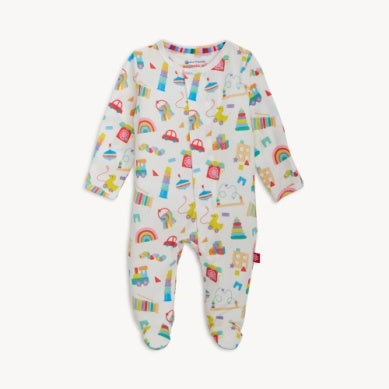- Magnetic closures make for quick, easy dressing and diaper changes.