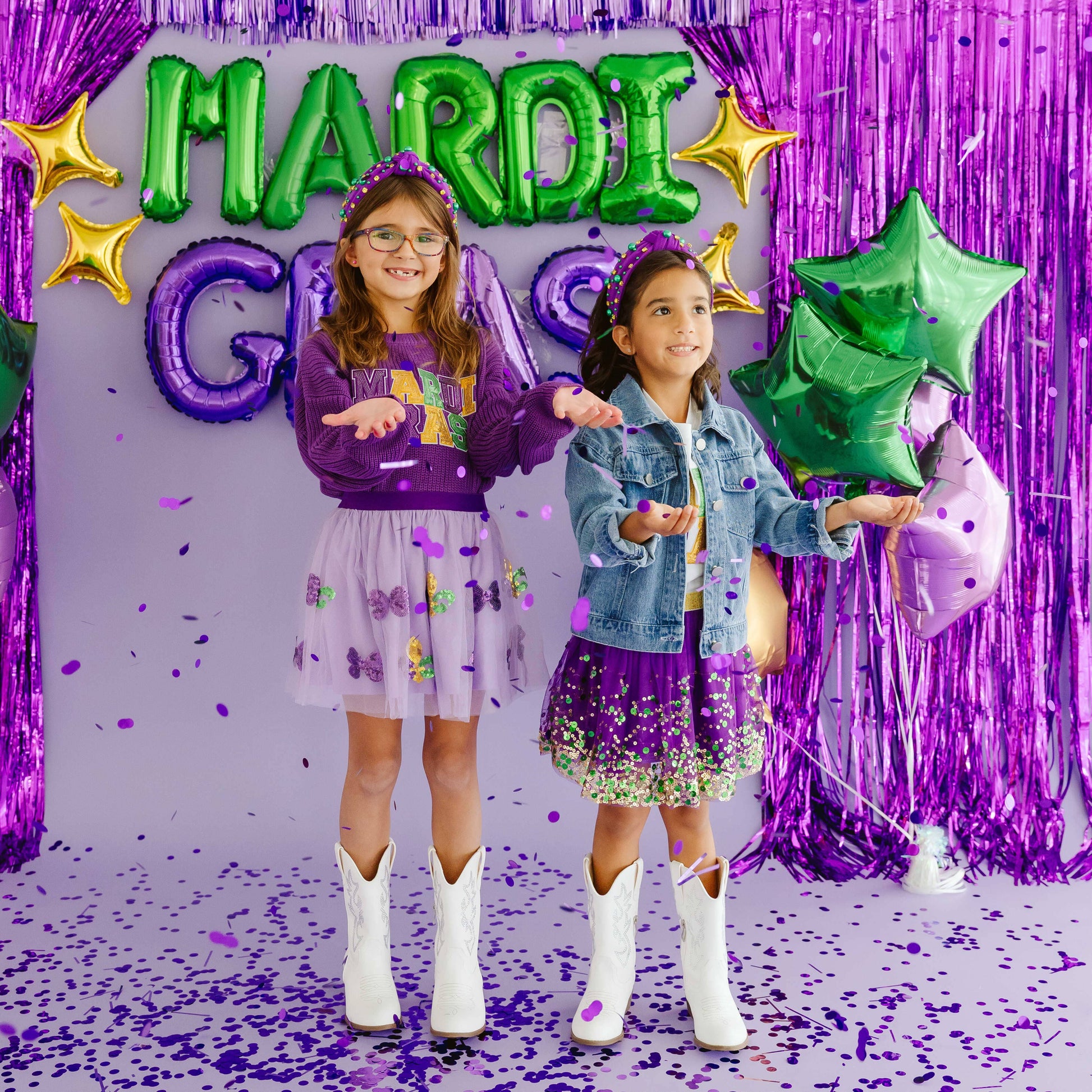 The Mardi Gras Sequin Patch Short Sleeve T-Shirt for kids is a fun and festive t-shirt for any Mardi Gras celebration or everyday wear!