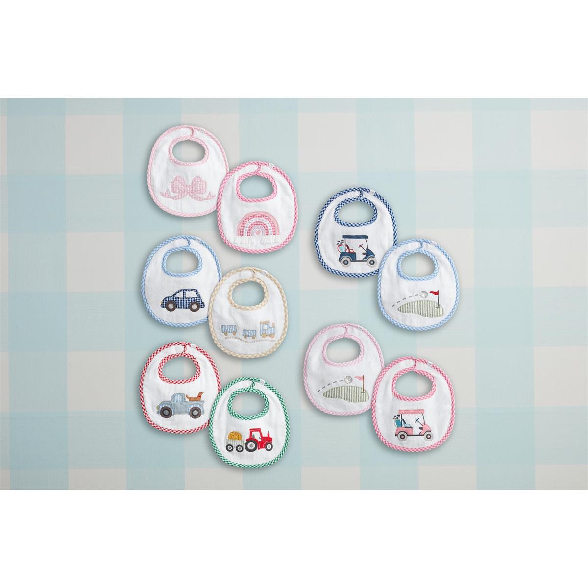 Make mealtime a breeze with the Mud Pie Car Applique Terry Bib! This bib features a fun car design and is made with soft velour terry cloth that is gentle on baby's skin. The contrast gingham binding adds a touch of charm, while the hook and loop closure makes it easy to put on and take off. Keep your little one clean and stylish with this adorable bib!
