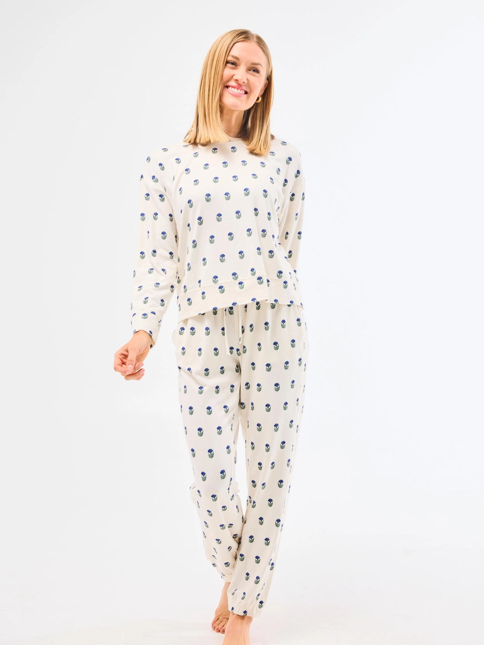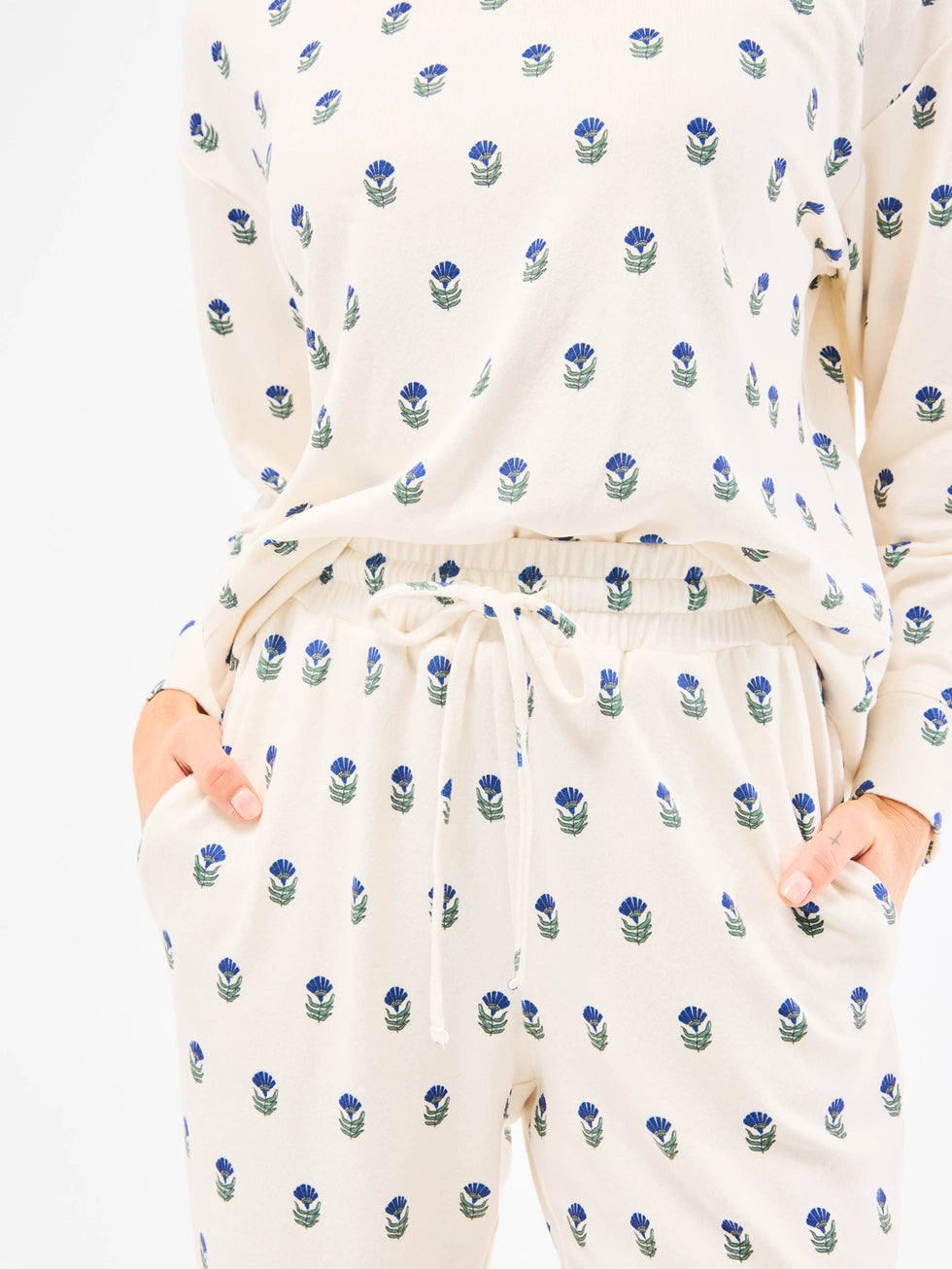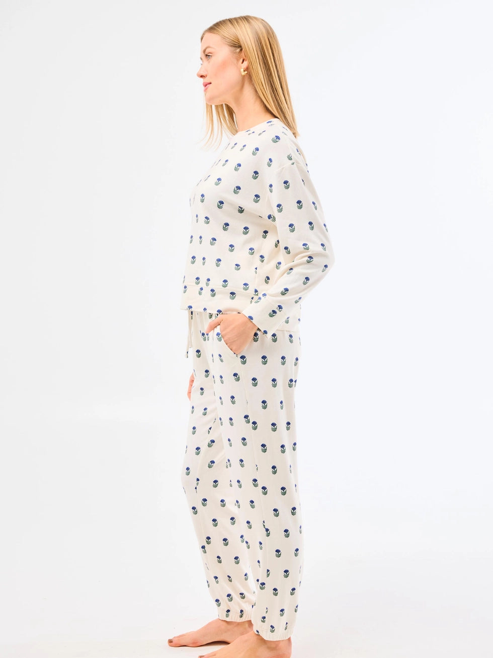 Experience ultimate relaxation with the Navy Floral Foulard Sophie Jogger Set, crafted from our signature LuxSoft fabric for unmatched softness. The easygoing crew neckline and relaxed fit top pair perfectly with wide-leg joggers featuring an elastic waistband and adjustable drawstring, ensuring comfort tailored to you. Whether you're unwinding at home or enjoying a cozy day in, this set combines style and comfort effortlessly—making it an essential addition to your loungewear collection.