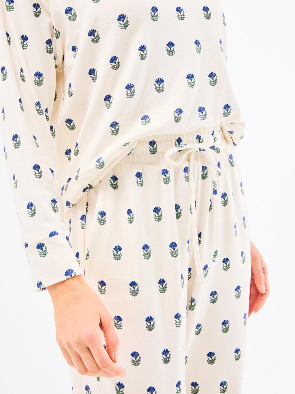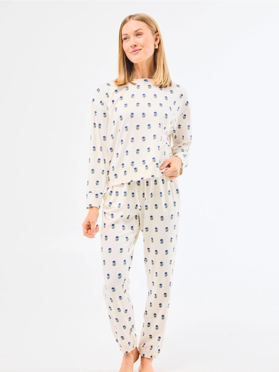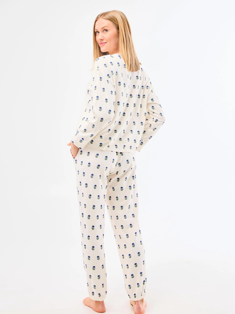 Experience ultimate relaxation with the Navy Floral Foulard Sophie Jogger Set, crafted from our signature LuxSoft fabric for unmatched softness. The easygoing crew neckline and relaxed fit top pair perfectly with wide-leg joggers featuring an elastic waistband and adjustable drawstring, ensuring comfort tailored to you. Whether you're unwinding at home or enjoying a cozy day in, this set combines style and comfort effortlessly—making it an essential addition to your loungewear collection.