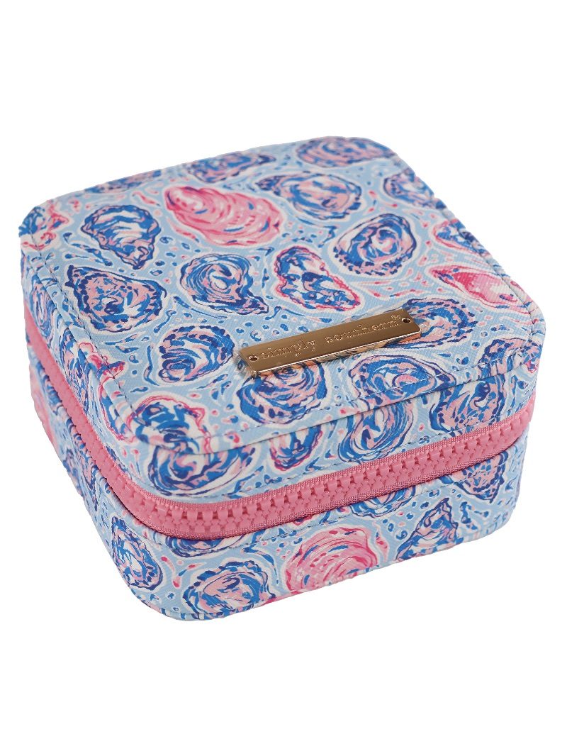 This printed jewelry box is the perfect place to store your jewelry at home or throw in a suitcase for travel. Featuring soft interior, ring, earring, and necklace storage with an interior mirror, gold hardware and Simply Southern logo. Made of 60% PVC 40% polyester.