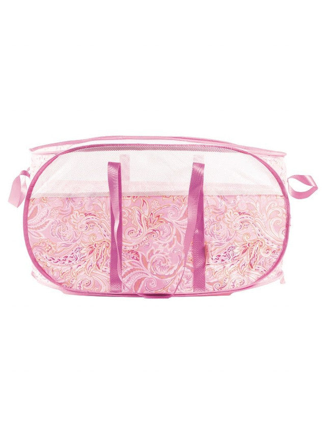 Never struggle with carrying your beach or pool essentials again! The Pink Paisley Pop-Up Trunk Tote easily collapses into a storage pouch, making it perfect for keeping in your trunk or bag. With its convenient design, you can effortlessly take it with you and enjoy your day without any hassle.