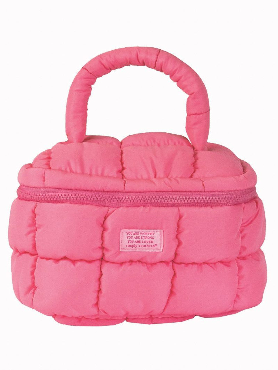 Elevate your style on-the-go with the Glam Marshmellow Bag. The top carry handle and fully lined interior make it easy to take all your essentials with you. Plus, the mesh zipper pocket and Simply Southern logo add a touch of glam to this practical accessory. Perfect for busy days and travel!