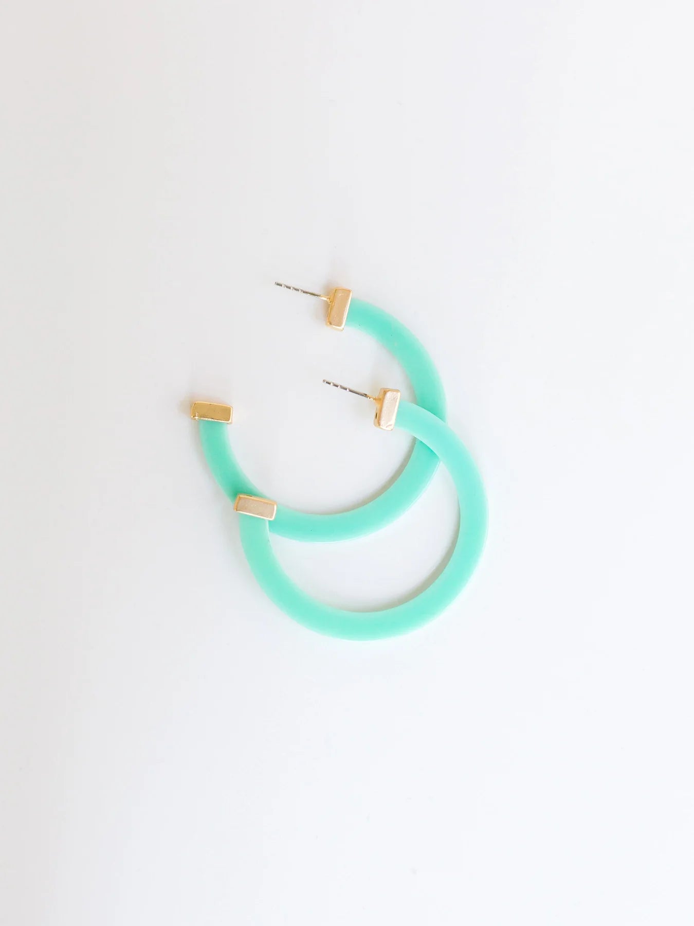 Brighten your style with our Classic Acrylic Hoops. Available in three different sizes and 12 colors!